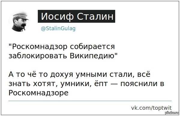 С Википедии сняли блокировку https://geektimes.ru/post/260794/ (25.08.2014) Неужели надежды "интеллектуальной элиты интернета" (по версии Russia Today) не оправдались? .SpoilerTarget" type="button">Spoiler http://cs5.pikabu.ru/post_img/2015/0...2056177513.jpg |