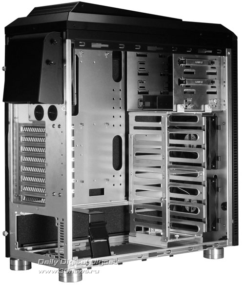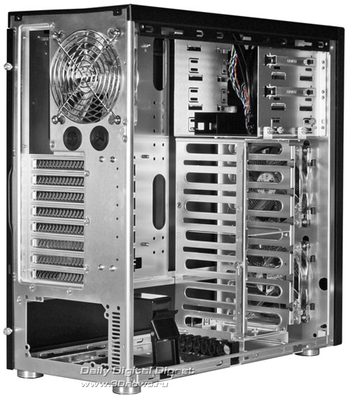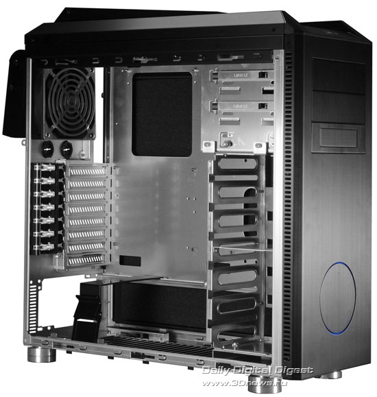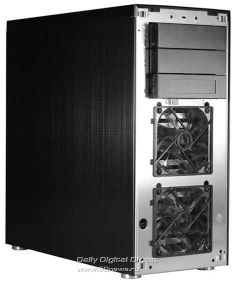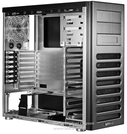 Новинка имеет привлекательный внешний вид, изготовлена полностью из алюминия, снаружи окрашена в чёрный цвет и совместима с платами стандартов ATX и Micro-ATX. Габаритные размеры составляют 210 х 545 х 545 мм при весе 7,2 кг. В арсенале присутствуют восемь слотов расширения, три 5,25-дюймовых внешних отсека (один легко трансформируется в 3,5-дюймовый), шесть посадочных мест под 3,5-дюймовые накопители, а также выведенные наружу два разъёма USB 3.0, порт eSATA и гнёзда для подключения наушников и микрофона. Поддержанием оптимального температурного режима внутри корпуса занимаются сразу четыре вентилятора, а именно пара 120-мм спереди, один 140-мм сверху и ещё один 120-мм сзади. http://www.3dnews.ru/_imgdata/img/2010/03/31/169588.jpg http://www.3dnews.ru/_imgdata/img/2010/03/31/169589.jpg http://www.3dnews.ru/_imgdata/img/2010/03/31/169590.jpg http://www.3dnews.ru/_imgdata/img/2010/03/31/169591.jpg Теперь осталось выяснить, где, когда и по какой цене данный продукт можно будет купить. 31 марта 2010г. http://www.lian-li.com |