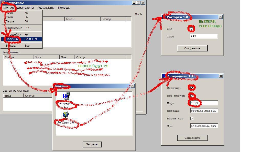 чет я не догоняю, как ее использовать... оно мне выдало кучу IP с открытыми портами, восновном 455.... и че ))) я какк бы мануалы не читал, для чего ОНО и где пароли....