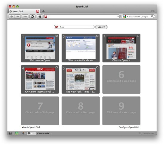 Компания Opera Software выпустила новую версию своего браузера для платформы Mac. По заверению разработчиков, новая Opera в десять раз быстрее, чем ее предшественник - Opera 10.10.