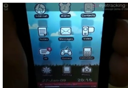 Шведская компания TAT, одна из специализаций которой - дизайн и разработка графических интерфейсов для разных устройств, представила прототип трехмерного интерфейса для мобильного телефона. Внешний вид иконок на дисплее смартфона меняется в зависимости от положения глаз человека, а также от угла наклона аппарата. При повороте смартфона в руке, изображение на экране начинает интерактивно изменяться, благодаря чему создается иллюзия трехмерного пространства внутри дисплея. Таким образом, можно, например "заглянуть" за плоские иконки приложений, рассмотреть рисунок, расположенный за ними.