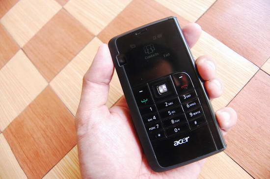 Особенностью Acer DX650 является двусторонность – два дисплея, две функциональные стороны. На основной части размещен большой тачскрин, а на вторичной – небольшой черно-белый экран и цифровая клавиатура. По замыслу производителя, пользователь будет использовать большой экран для работы с мультимедиа, а клавиатуру и маленький дисплей – для звонков и отправки SMS.