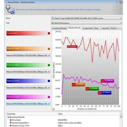 Что удивляет в продукте, так это гарантийные обязательства его производителя. Они распространяются на 10-летний срок и базируются на простых условиях: пока нет физических повреждений, изделие заменят либо отремонтируют. Каковы же характеристики устройства? Электронное издание The Inquirer взялось выяснить, действительно ли TorqX заслуживает внимания. На тестирование попала 128-Гб модель, не имеющая ничего экстраординарного в конструкции. Стенд включал процессор Intel Core i7 975XE, системную плату Asus Rampage II Extreme и 6 Гб памяти DDR3-2000 Kingston HyperX, работавшей в режиме DDR3-1600 с таймингами CL 6-6-6-15. Операционная система - Windows Vista 64. Для тестирования использовался пакет Sandra 2009 SP3.