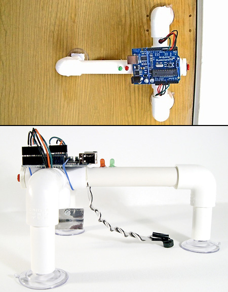 Изобретено устройство, которое сможет решить проблему захлопнутых дверей и ключей, забытых внутри квартиры. Это своего рода детектор стука, который способен открыть дверь, если в неё постучат правильным образом. Прибор крепится на дверь изнутри квартиры, в роли крепления выступает система присосок. Затем, вам необходимо «настучать» устройству секретную комбинацию, которая может быть чем угодно: ритмом вашей любимой песни, фразой «Сим-сим, откройся» на азбуке Морзе и пр.