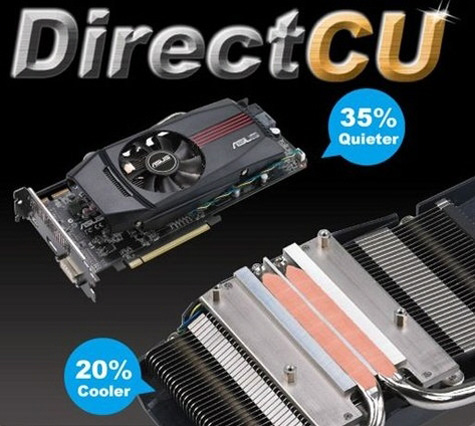 Вторая новинка является альтернативной версией ATI Radeon HD 5850 с 1440 потоковыми процессорами и оборудована оригинальной по конструкции системой активного воздушного охлаждения DirectCU. Этот кулер состоит из прикрытого чёрным пластиковым кожухом массивного алюминиевого радиатора, двух вступающих в непосредственный контакт с поверхностью видеочипа медных тепловых трубок, а также крупного малошумящего вентилятора с чёрной крыльчаткой. При этом источник приводит официальный презентационный слайд, из которого следует, что в сравнении с референсной системой охлаждения разработка инженеров из ASUSTeK Computer обеспечивает дополнительное понижение температуры GPU на 20%, а по уровню создаваемого во время работы шума тише на 35%.