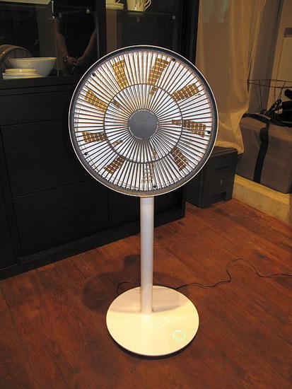 Устройство имеет два вентилятора, один побольше с 9 лопастями, и один поменьше с пятью. Вентиляторы размещены на общей оси и совместными усилиями способны создавать сплошной поток движущегося воздуха, похожего на нежный бриз. Вентилятор имеет четыре режима интенсивности воздушного потока. Кнопки управления работой прибора расположены сверху на крышке за вентилятором, а индикатор текущего режима работы – внизу на подставке.