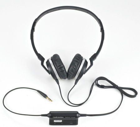 ATH-ANC1 — это лёгкие складные наушники (их вес составляет всего лишь 100 г), оснащённые мощными динамиками диаметром 36 мм. Главной их особенностью является схема активного шумоподавления. Реализована она в виде небольшой коробочки со встроенным микрофоном, который считывает окружающий шум и подмешивает его в противофазе к полезному сигналу. Работает это все на одной батарейки ААА, находящейся в той же коробочке. Система активного шумоподавления позволяет снизить слышимость шумов на 85%. Наушники могут работать и в пассивном режиме (с выключенным шумоподавлением), так что даже если батарейка внезапно сядет, слушатель не останется без любимой музыки.