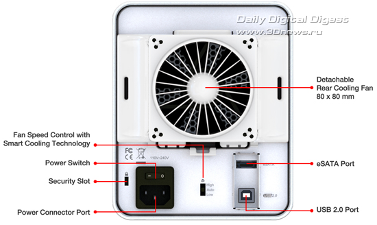 Данная модель изготовлена из алюминия и пластика, обладает габаритами 234,9 х 141 х 175 мм и в плане дизайна стилизована под Apple Mac mini. Она снабжена портами eSATA и USB 2.0, оборудована четырьмя светодиодными индикаторами состояния и оснащена встроенным блоком питания мощностью 112 Вт. Модель охлаждается активным способом посредством одного 80-мм вентилятора, причём благодаря технологии Smart Cooling у пользователя есть возможность самостоятельно выбирать скоростью вращения «пропеллера» (доступны три режима).