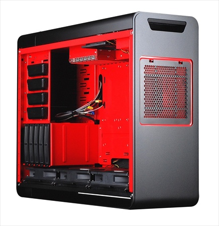 Остальные спецификации остались без изменений. Шасси корпуса изготовлено из толстого листа алюминия и нержавеющей стали, его габариты составляют 212 х 497 х 616 мм при весе 15 кг, а конструкцией предусмотрено наличие пяти внешних отсеков для 5,25-дюймовых устройств, пяти внутренних 3,5-дюймовых и одного посадочного места для установки диска типоразмера 2,5 дюйма. В актив новинки можно записать расположенную в верхней части интерфейсную панель, а также повёрнутую на 90 градусов систему крепления материнской платы.