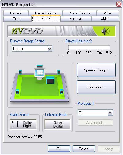 Несмотря на свой юный возраст nVDVD обладает большими возможностями, включая декодер Dolby Pro Logic II, сохранение звуковых фрагментов, и даже полноценный Караоке для любителей музыкальных вечеринок. В целом функциональное оснащение nVDVD представляет собой нечто среднее между PowerDVD и WinDVD. В дополнение к обязательным функциям имеется растяжка воспроизведения по времени, коррекция скорости видеозаписей в формате PAL, ручной и автоматический контроль деинтерлейсинга, а также показатель уровня битрейта видео. Уникальной особенностью плеера является опция калибровки, позволяющая оптимально настроить качество изображения и звука без тестового диска. Например, при помощи встроенного генератора шума можно выставить необходимый уровень громкости для каждого канала. Имеется также возможность указывать задержки в миллисекундах для центрального и тылового канала. К сожалению, плеер не поддерживает декодирование DTS саундтреков, но возможно такая опция будет доступна в будущем мультимедийном центре nVIDIA ForceWare, который заменит собой nVDVD.