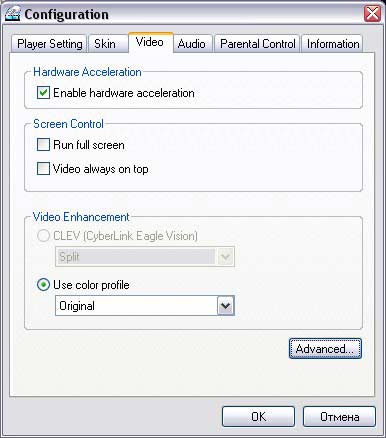 Как и положено современному плееру PowerDVD поддерживает на аппаратном уровне функции воспроизведения iDCT и Motion Compensation. За счет этого уменьшается нагрузка на центральный процессор, увеличивается качество изображения и плавность движений объектов на экране. Воспроизведение в обе стороны осуществляется на скоростях: 0.5x, 0.75x, 1x, 1.5x, 2x, 3x, 4x, 8x, 16x, 32x (со звуковым сопровождением до 2x включительно). Для любителей подробностей предусмотрено цифровое масштабирование с возможностью перемещения "лупы".
