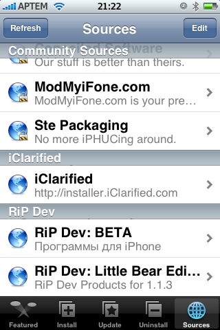 AppTap (он же Installer.app) - Пакетный менеджер для iPhone. Он позволяет с помощью WiFi или EDGE скачивать и устанавливать, а так же обновлять и удалять приложения с различных репозитариев (хранилищ софта).
