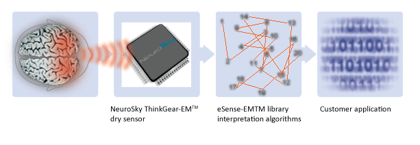Основным назначением продукта NeuroSky являются, конечно, игры. Т.к. данное устройство способно «понимать» нервные состояния человека, такие как испуг, напряженность, спокойствие - реалистичность игр должна выйти на новый уровень. Например, в популярных сейчас «ужастиках» (F.E.A.R., Penumbra) проходить страшные или волнующие моменты станет намного труднее. Но такое положение дел может привести и к обратному эффекту, ведь большинство пользователей любит в играх именно сверхвозможности, а влияние нервного состояния может лишить игрока этих способностей. Курсором управлять предлагается движениями глаз, а степень воздействия на объекты варьируется с помощью концентрации.