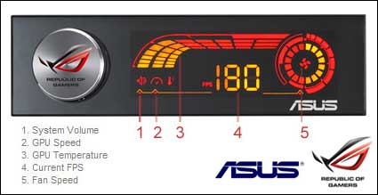 По словам разработчиков, данный блок значительно упрощает процесс разгона графического адаптера и предоставляет возможность мониторинга таких важных параметров, как частотные показатели ядра, шейдерных блоков и микросхем памяти, температура видеочипа, скорость вращения вентилятора системы охлаждения, а также текущее количество кадров в секунду. Для изменения значений предусмотрен специальный регулятор, тогда как отображение всей визуальной информации происходит на встроенном в лицевую панель светодиодном дисплее с размерами 89 х 31,6 мм. При этом решение обладает габаритами 148,5 х 42,6 х 139,6 мм, а его потребляемая мощность составляет 5 Вт.
