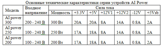 Серия устройств AI Power представляет собой линейку из трех блоков питания мощностью 200, 250 и 300 Вт для настольных персональных компьютеров. Реализовав ряд решений, специалистам компании удалось уменьшить в несколько раз компоненты, отвечающие за снабжение компьютера энергией, благодаря чему появилась возможность разместить в корпусе устройства дополнительный аккумулятор.