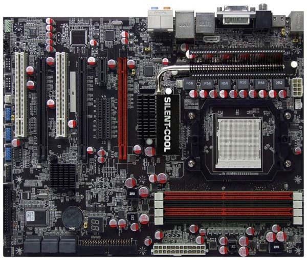 Система стабилизации изделия снабжена широтно-импульсным модулятором (PWM), имеющим схему 5+1 фаза, а сама ATX-платформа допускает установку высокопроизводительных процессоров AMD под Socket AM2/AM2+ с шиной HyperTransport 3.0 и уровнем TDP до 140 Вт. В свою очередь понижением температуры основных "горячих точек" занимается оригинальная по дизайну система пассивного охлаждения SILENT-COOL с тепловой трубкой. Примечательно и то, что в арсенале присутствует интегрированная в чипсет графика ATI Radeon HD 3300, которая совместима с DirectX 10 Shader Model 4.0, имеет усовершенствованный видеопроцессор Unified Video Decoder (UVD) и поддерживает технологию ATI Avivo HD Technology для аппаратного ускорения декодирования видео форматов VC-1, MPEG-2 и H.264. Кроме того, благодаря реализованной поддержке интерфейса PCI Express 2.0 и технологий ATI Hybrid Graphics Technology и ATI Hybrid CrossFireX Technology есть возможность организации эффективной совместной работы встроенного видеоядра и одного, двух либо даже трёх дискретных видеоадаптеров, что в итоге позволит значительно повысить производительность системы и одновременно снизить её энергопотребление. При этом для обслуживания нужд графической подсистемы на борту есть 128 Мб видеопамяти SidePort типа DDR3.