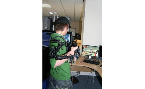 Цель коллектива из университетского Центра компьютерной графики – создать инерциальную "Персональную систему регистрации движений" (Personal Motion Capture System) с реалистичной стоимостью. Надевается для краткости называемая "Гиперкостюмом" масса электроники за 30 секунд. Она надевается на руки, фиксирует повороты головы благодаря кепке с датчиком и имеет располагаемую на груди системную плату, осуществляющую связь с компьютером через Bluetooth. Для обеих кистей предназначены отдельные джойстики с кнопками. Специально для демонстрации возможностей костюма выбрана игра Hyperfighter в качестве простого примера его использования. Персонаж является стрелком из лука, поэтому пользователь вынимает виртуальную стрелу из расположенного за спиной колчана, натягивает тетиву и отпускает её, пытаясь стать для соперника последним виденным им Робином Гудом. Hyperfighter – самостоятельная разработка Университета Сассекса, в которой использован "движок" Panda3D от Disney, хотя в настоящий момент совершается переход на Reality. Также аспиранты доктора Мартина Уайта (Martin White) показали игру в боулинг, адаптированную для костюма всего за неделю.