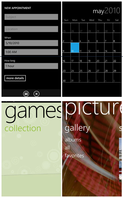 Также смартфоны будут иметь специальную кнопку Bing, которая позволит осуществить быстрый поиск по всем данным мобильного телефона. В ОС будет шесть основных разделов: люди, изображения, игры, музыка и видео, магазин, а также офис.
